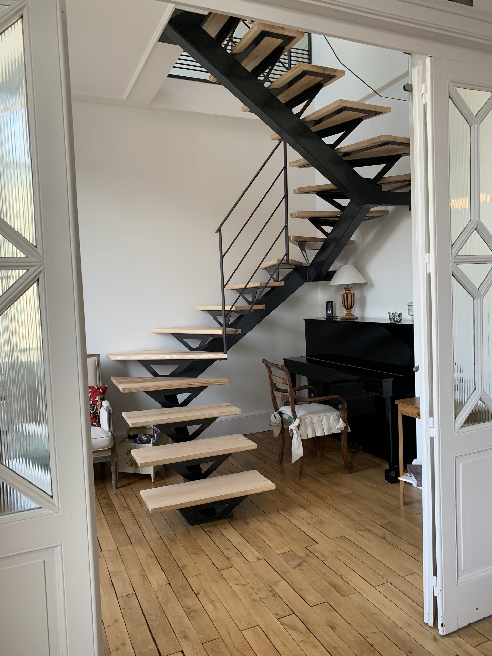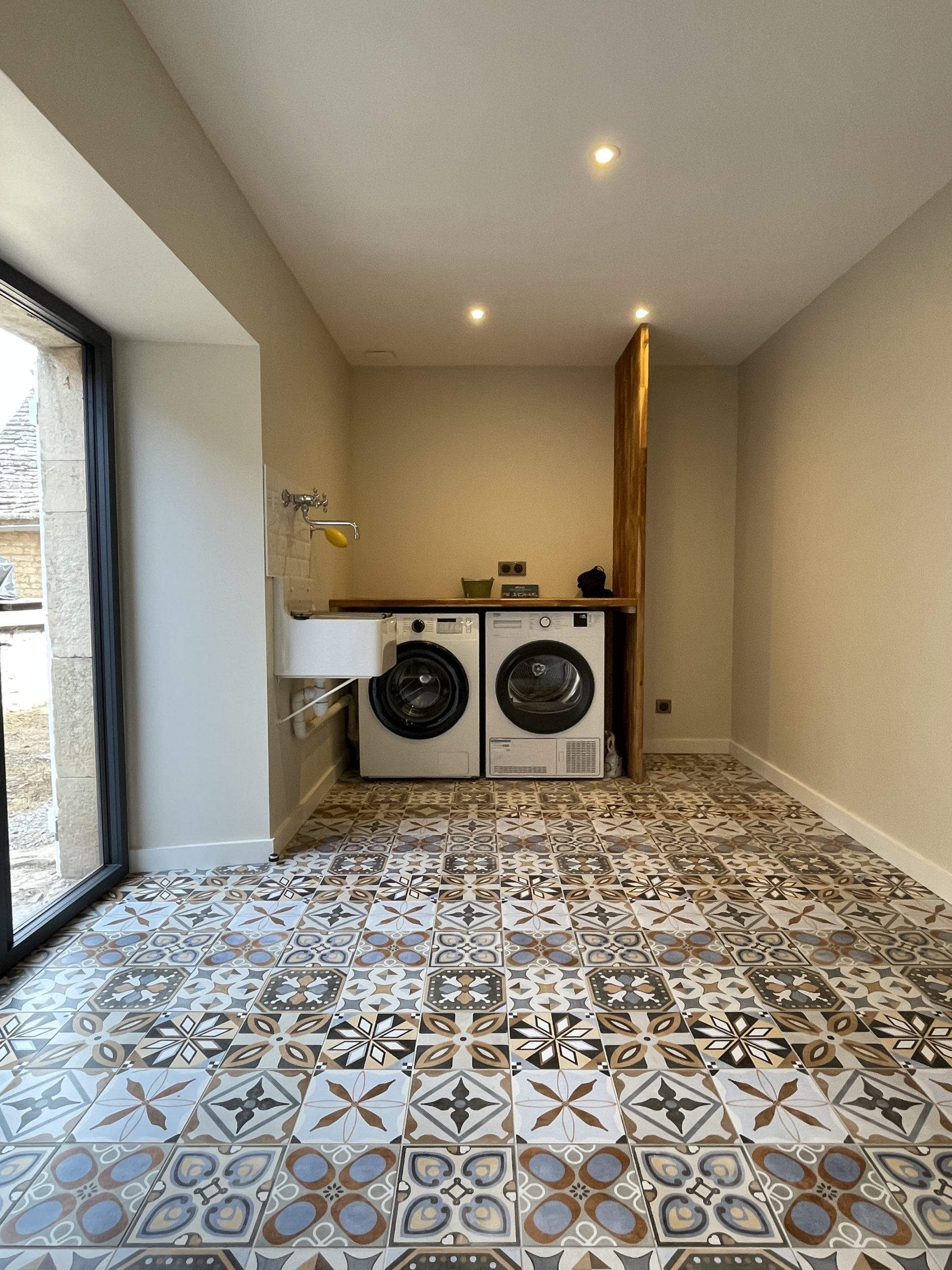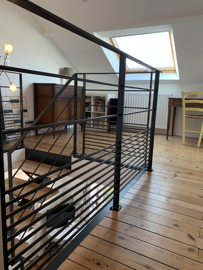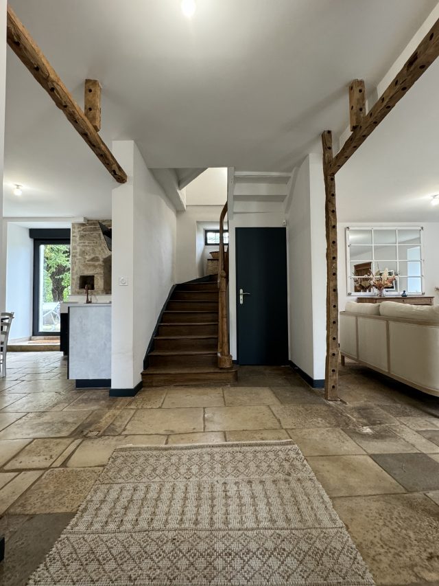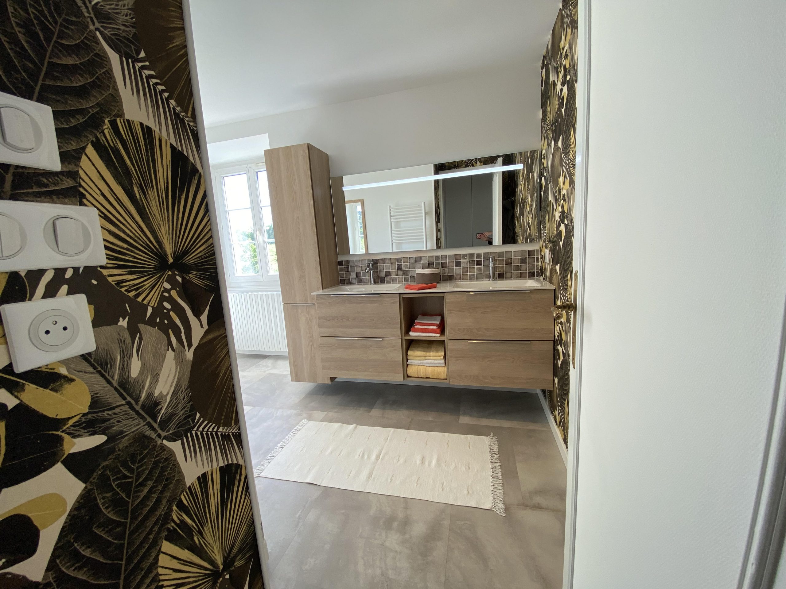 Pour cette ancienne maison des années 1900, nos équipes ont totalement rénové l’étage de cette maison composée d’une salle d’eau, d’un bureau, de deux chambres et d’un WC. L’ancienne moquette a laissé place à un magnifique parquet qui a été poncé et vitrifié. Les couleurs de peinture et les papiers peints @delzongle modernisent l’ensemble.