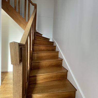 Nos équipes ont repensé l’agencement des lieux de façon à créer un foyer plus spacieux et fonctionnel pour la famille. Afin d’ériger un séjour lumineux et aéré, la cuisine s’est déplacée et des cloisons ont été déposées. Le nouvel espace cuisine est dorénavant ouvert sur le séjour et délimité par un bar. Trois belle chambres et deux salles d’eau complètent cette maison. L’ancien parquet a été poncé et vitrifié et une note particulière s’est portée sur l’isolation et le chauffage.