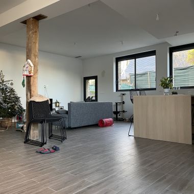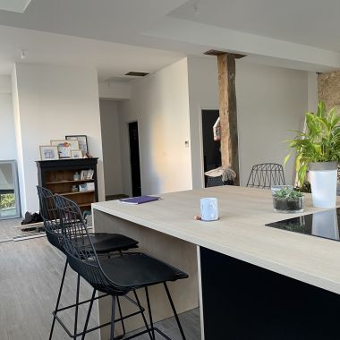 Le Projet GOLFIER est un ancien atelier de menuisier, transformé en maison d’habitation. Nous avons rénové l’intégralité des lieux et pensé un agencement astucieux des pièces afin d’optimiser l’espace. La grande pièce de vie est baignée de lumière grâce aux nombreux châssis. La salle d’eau trouve sa place entre les deux chambres du rez-de-chaussée. Les peintures claires et les sols imitation bois rendent la maison chaleureuse et apaisante. Enfin, nous avons porté une attention particulière à l’isolation thermique et au chauffage afin d’obtenir les performances d’une construction neuve.
