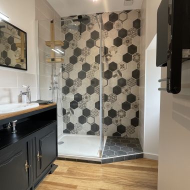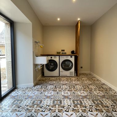 Ce projet situé à la frontière de la Corrèze et du Lot, a constitué un véritable challenge pour toute l’équipe. Atypique dans ses choix esthétiques et son aménagement, cette ancienne longère est à l’image de sa propriétaire :originale, joyeuse et chaleureuse!